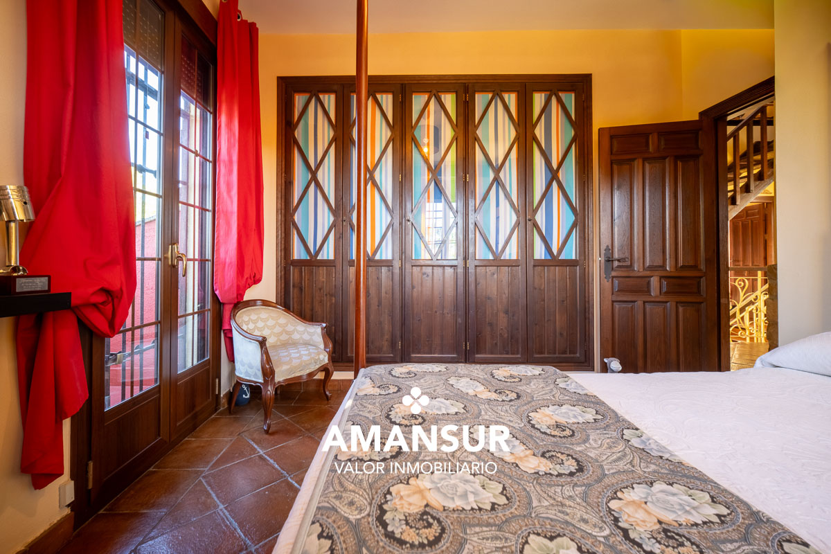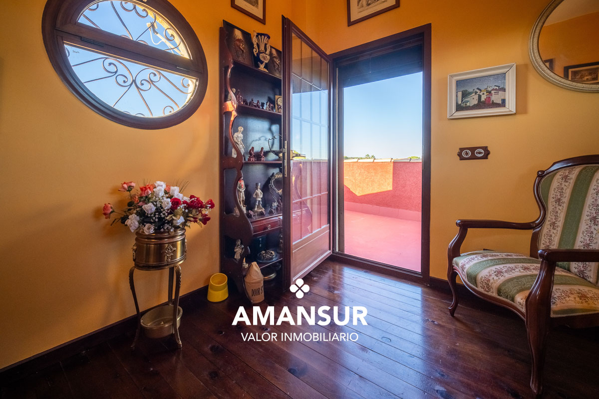 La planta superior alberga el dormitorio principal tipo suite con terraza privada, baño completo y armarios empotrados, además de dormitorios adicionales y una exclusiva estancia tipo ático-mirador con grandes ventanales.