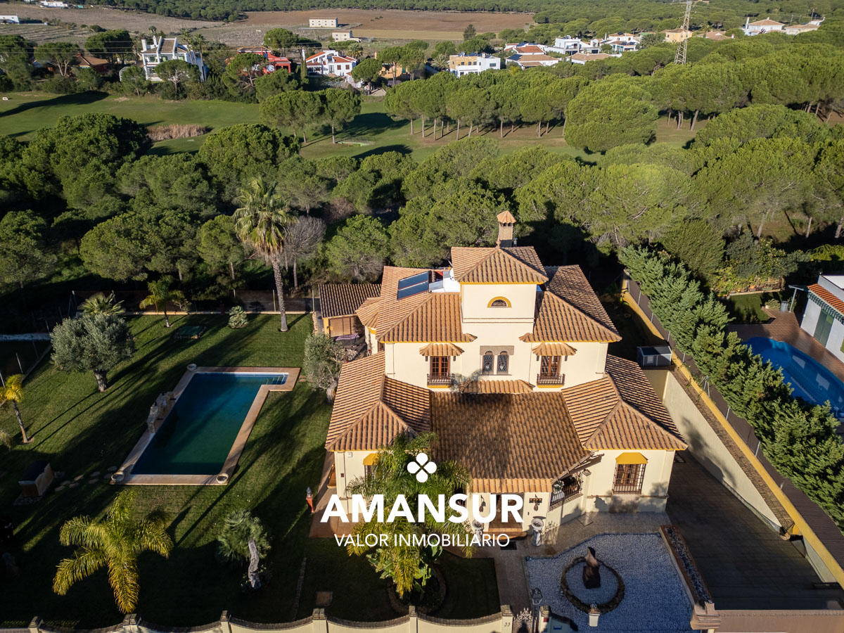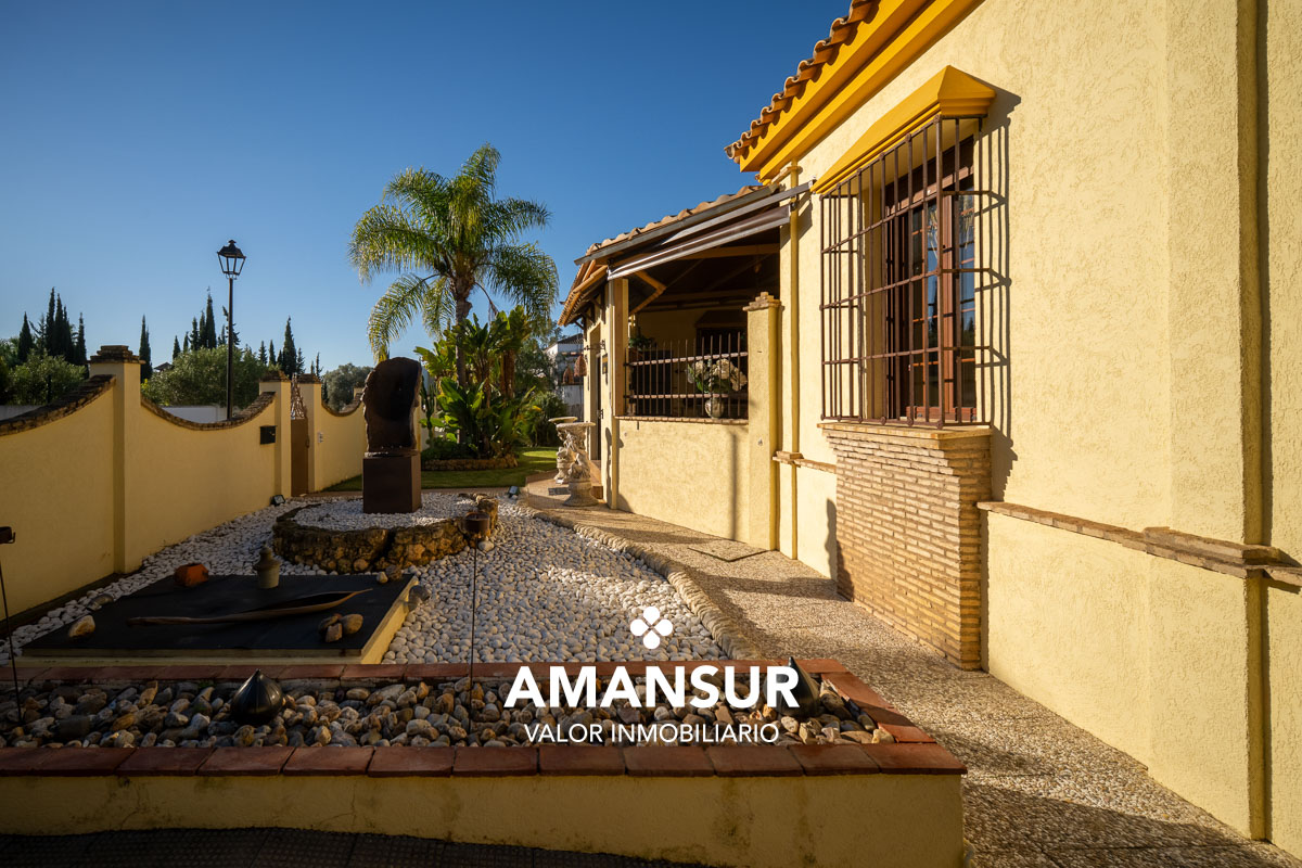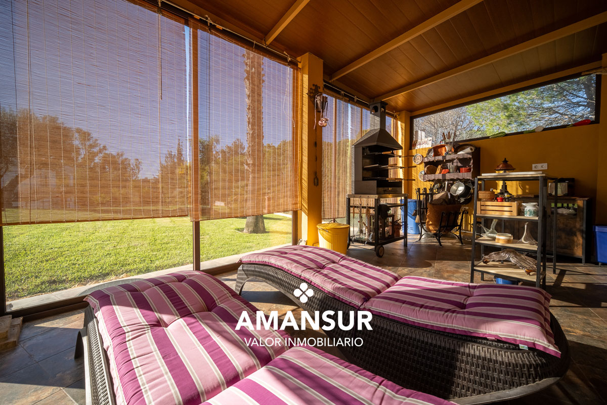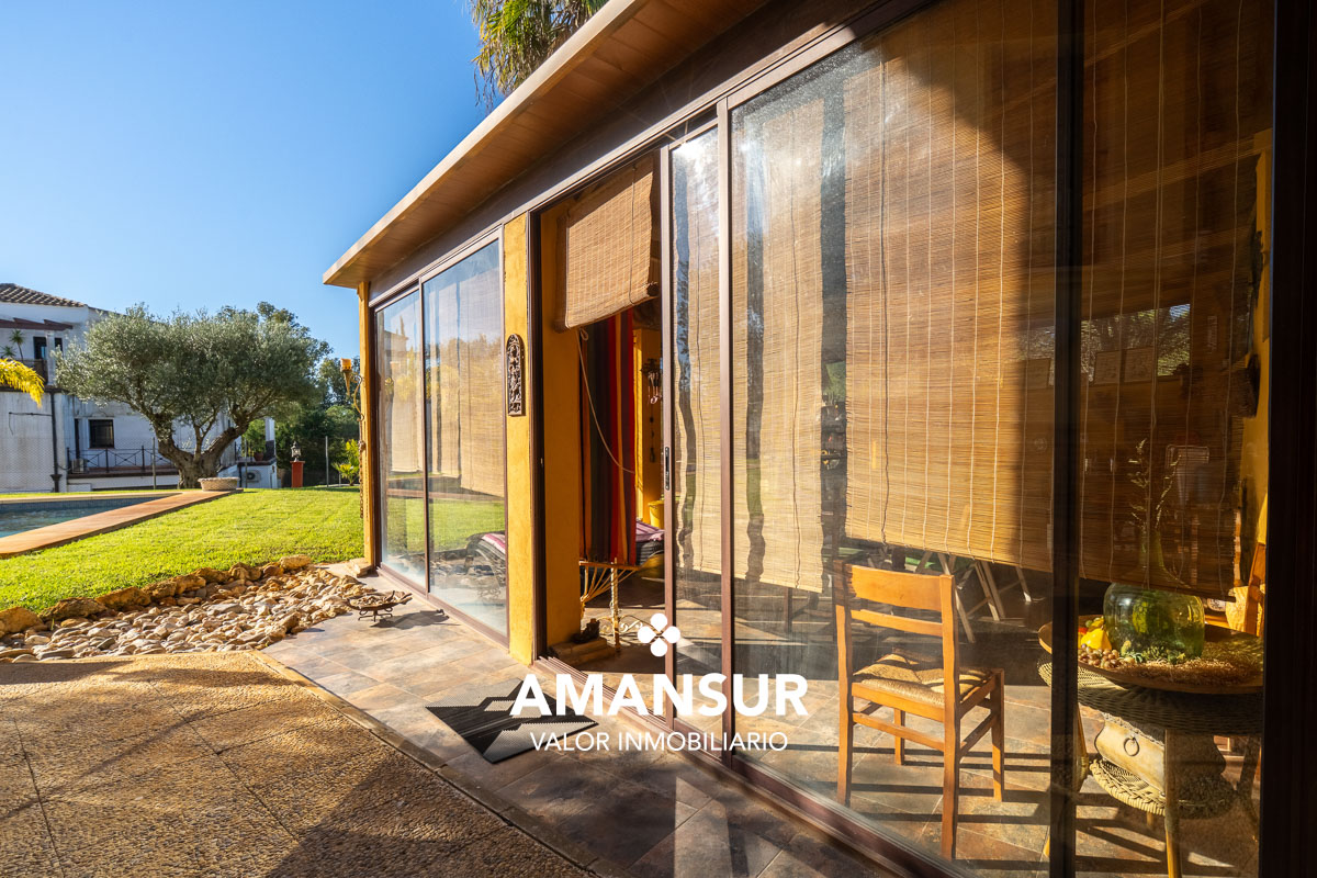 La vivienda disfruta de magnífica orientación, piscina privada rodeada de césped natural, palmeras y árboles frutales, así como múltiples espacios exteriores: porche delantero, elegante porche trasero con vistas al golf y una exclusiva zona exterior tipo invernadero, perfecta para almuerzos, barbacoas y reuniones sociales.